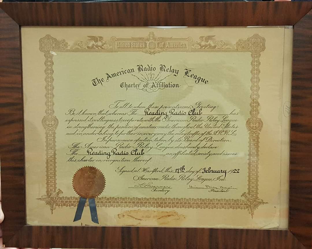 Reading Radio Club founded by ~35 wireless experimenters at the Reading Company YMCA (8th & Green St).